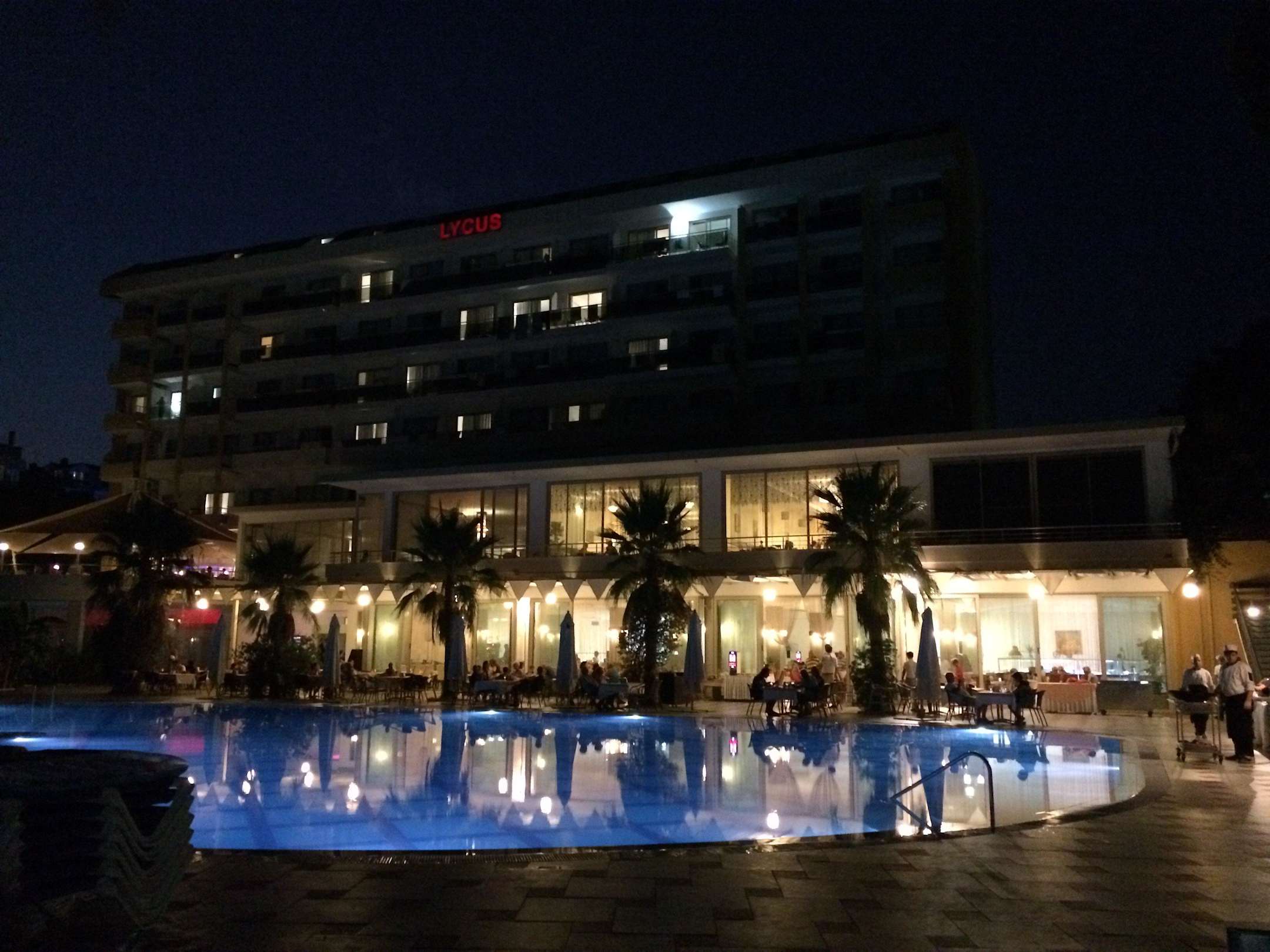 Pool bei Nacht vom Strand aus