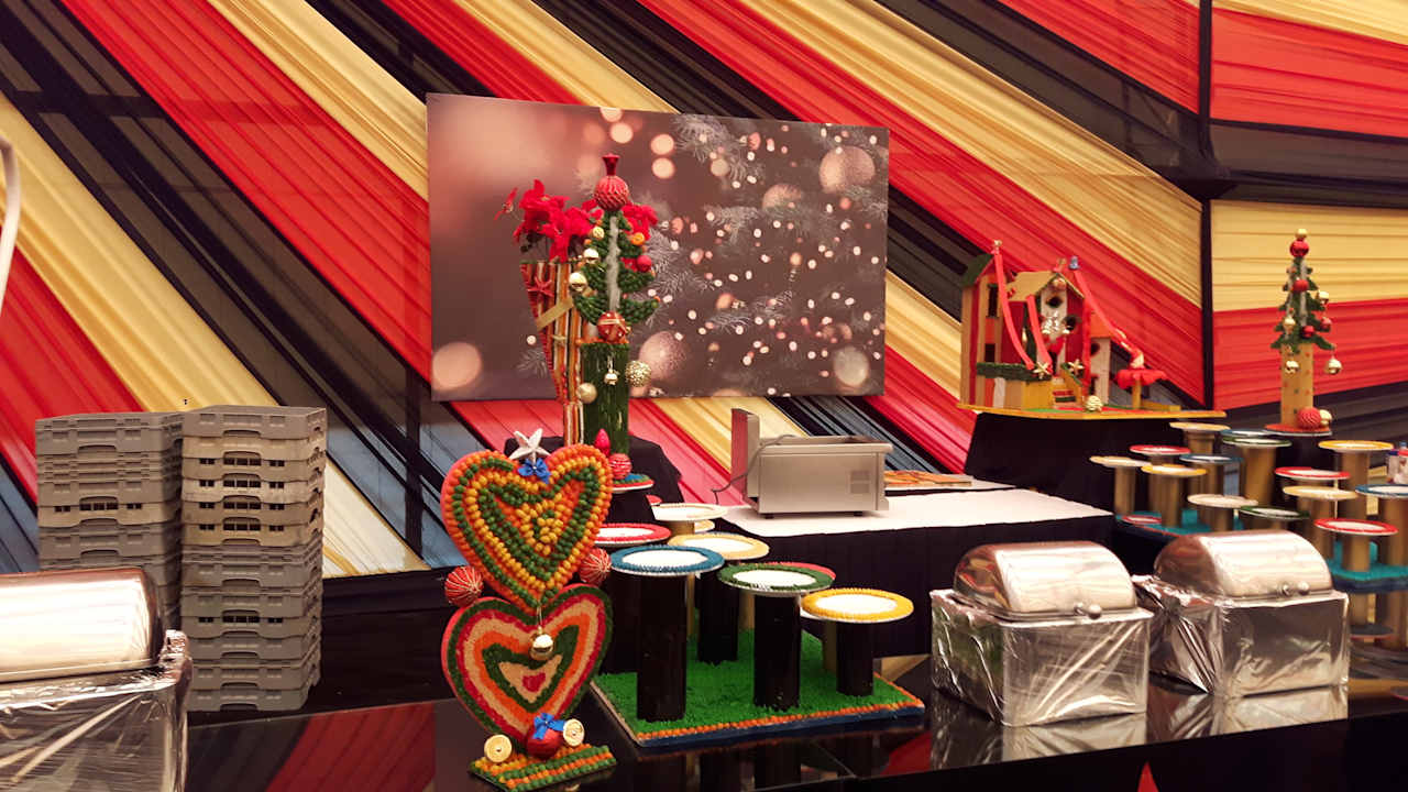Weihnachtsdekoration im Zelt