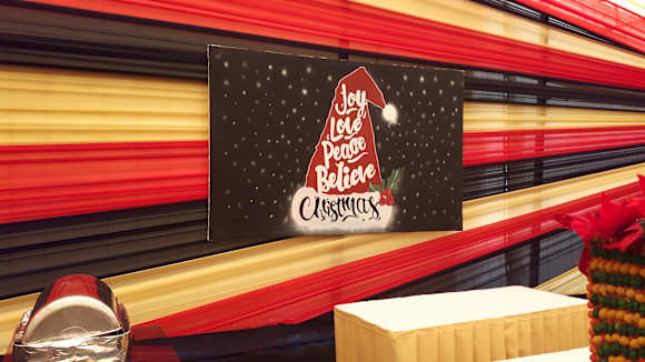 Weihnachtsdekoration im Zelt
