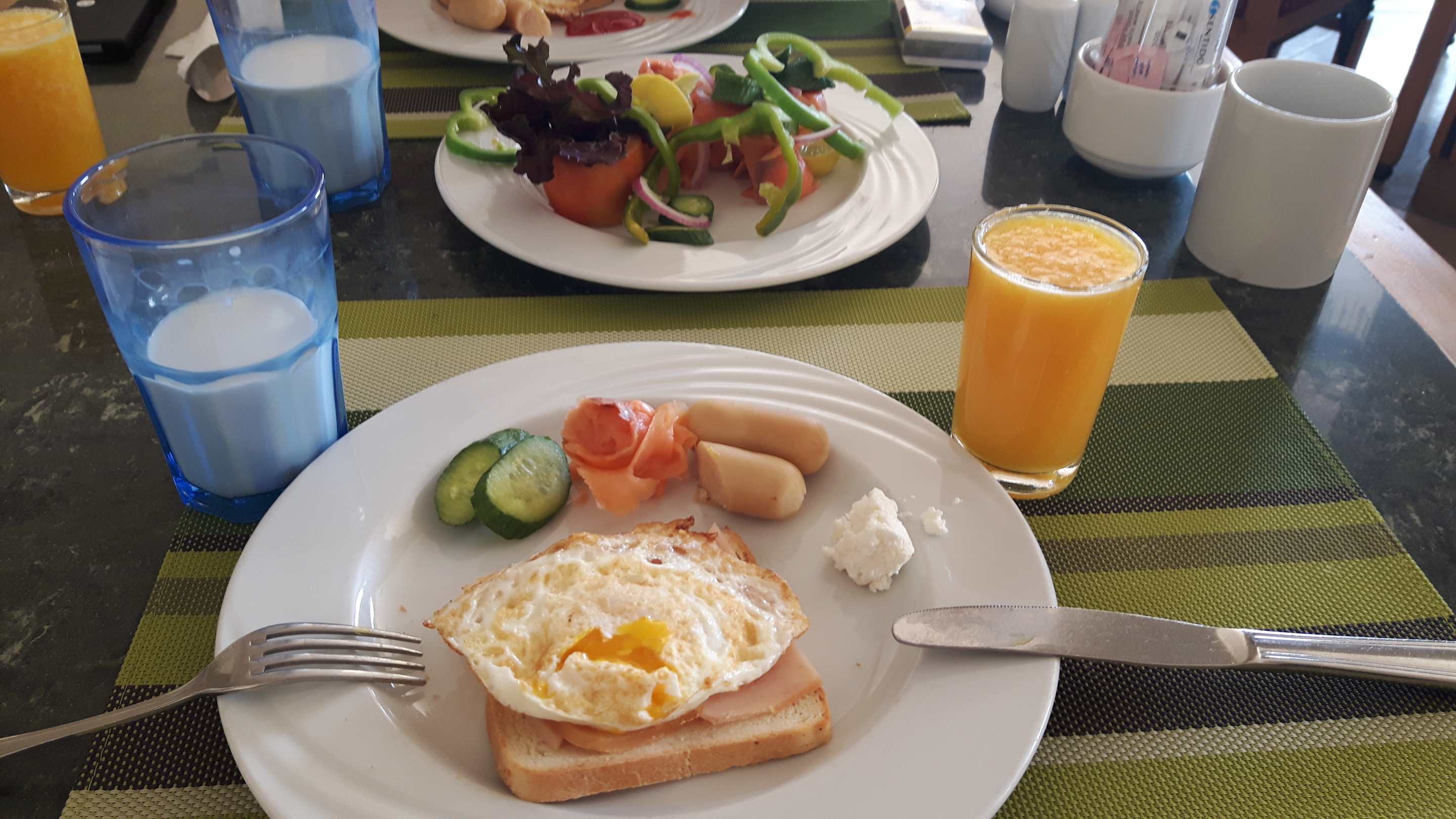 Frühstück frischer Osaft und Milch