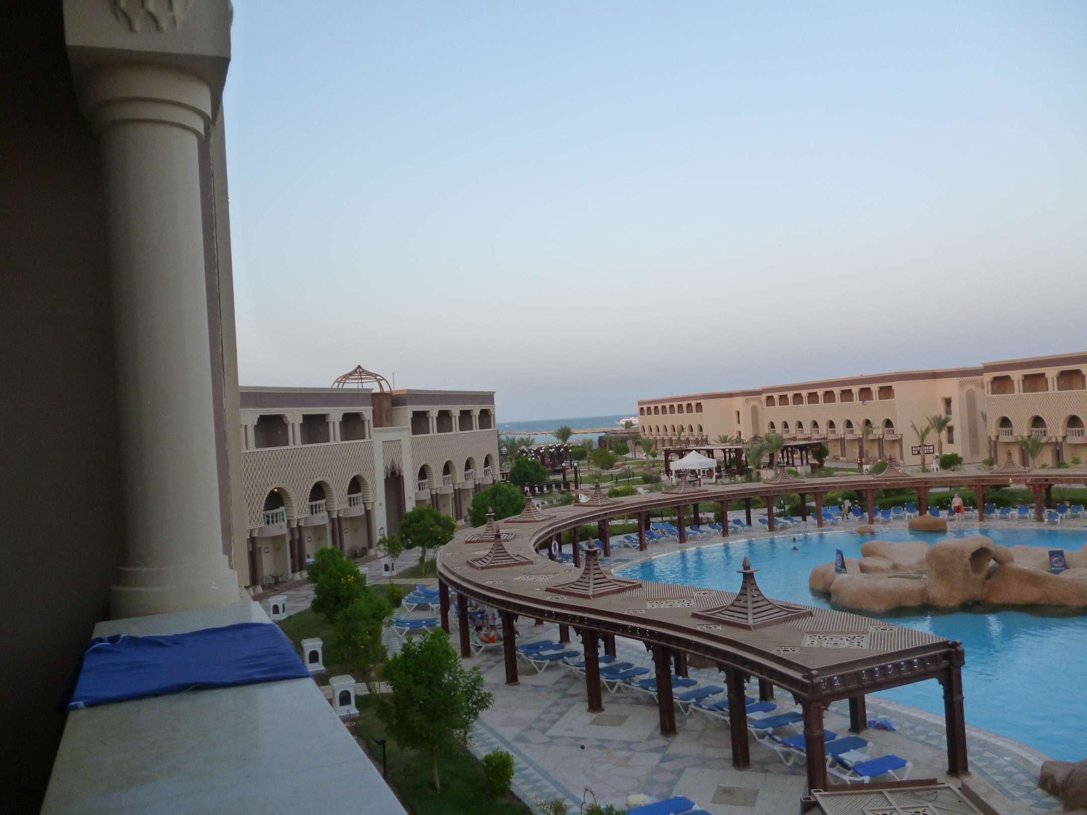 View of the pool from our balcony .