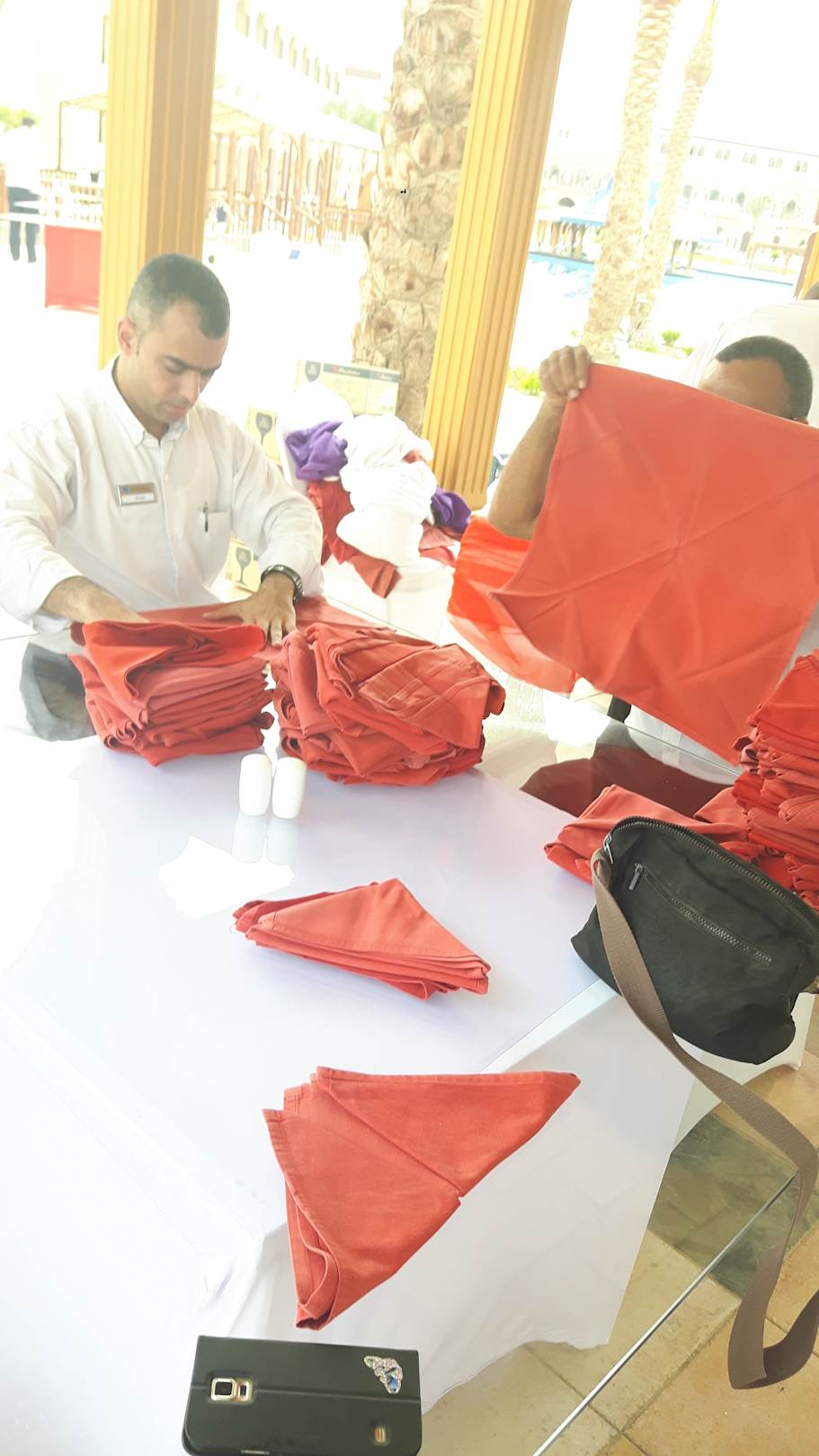 Vorbereitung zum VIP Abend Wael beim Servietten falten