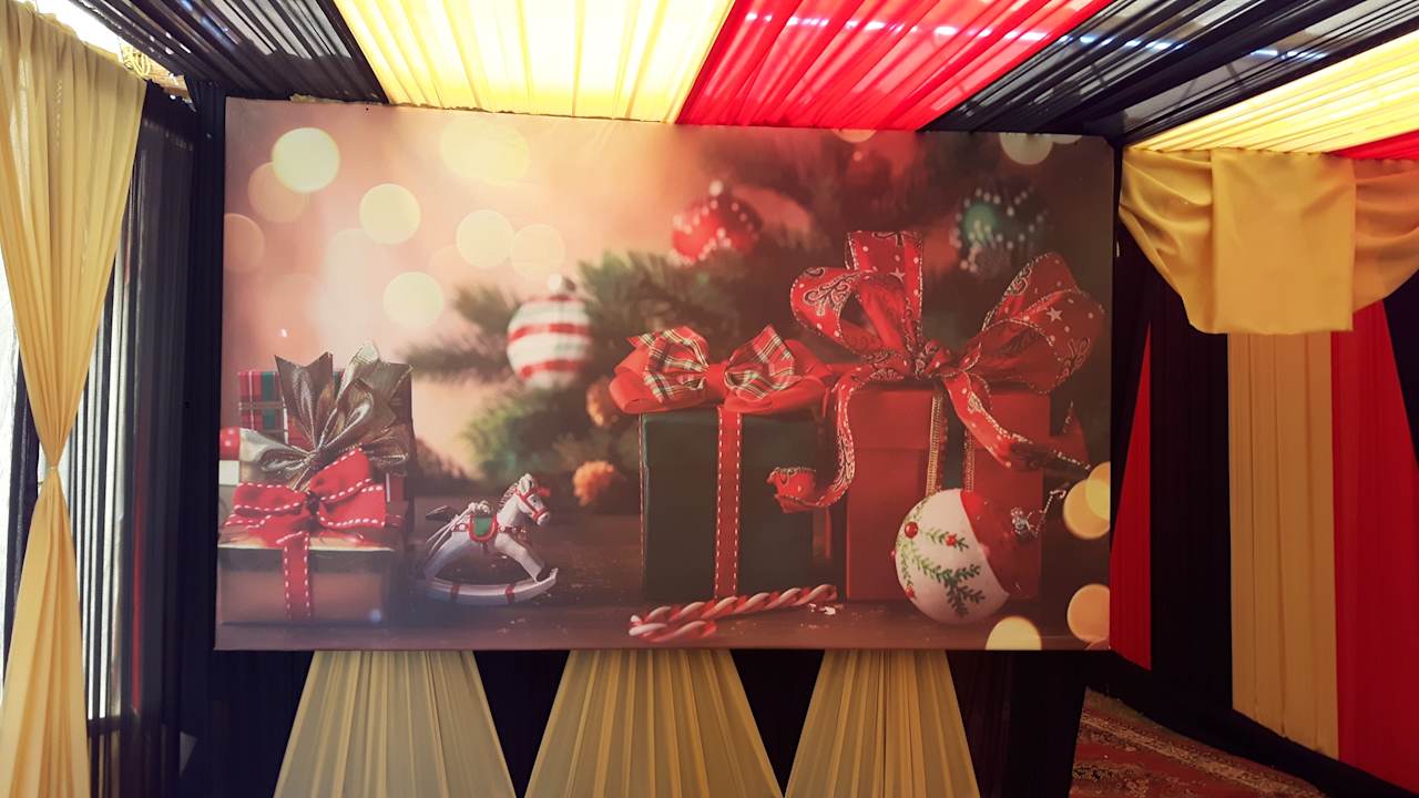 Weihnachtsdekoration im Zelt