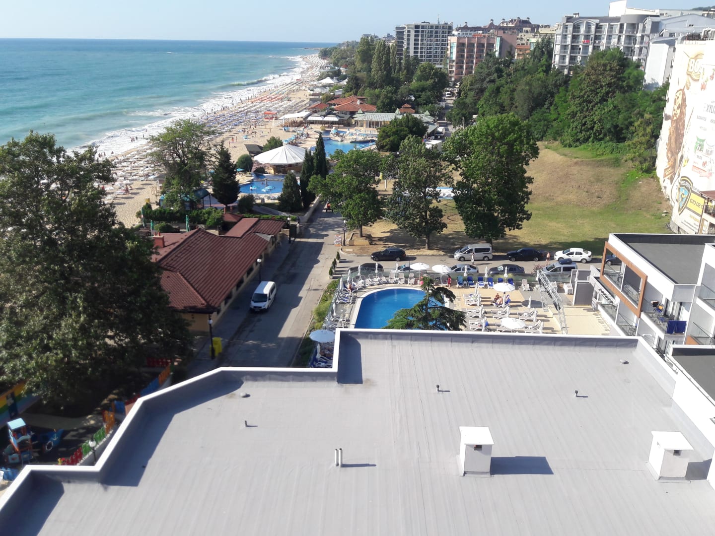 Blick auf dem Dach der unteren Zimmer und Restaurants-Zimmer 949