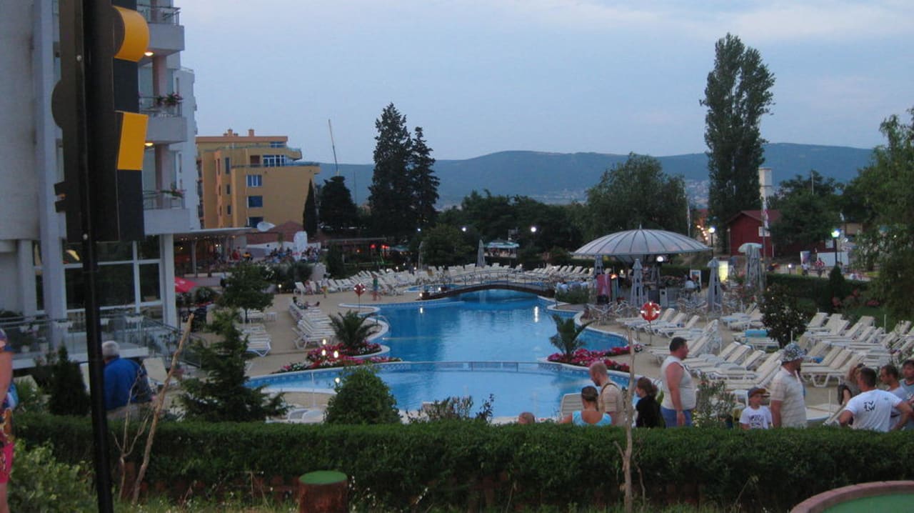 Blick auf den Pool vom MInigolfplatz