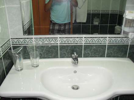 Viel Abstellplatz am Waschbecken, großer Spiegel