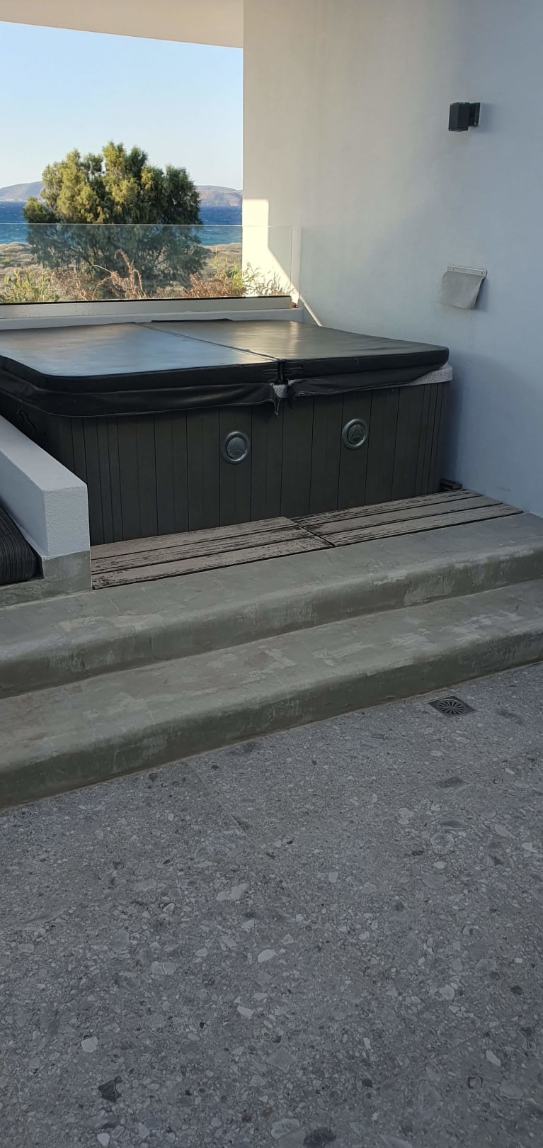 ZimmerDie Holzbretter vor dem Jacuzzi liegen nur locker auf ein paar Kanthölzern die schnell verrutschen.