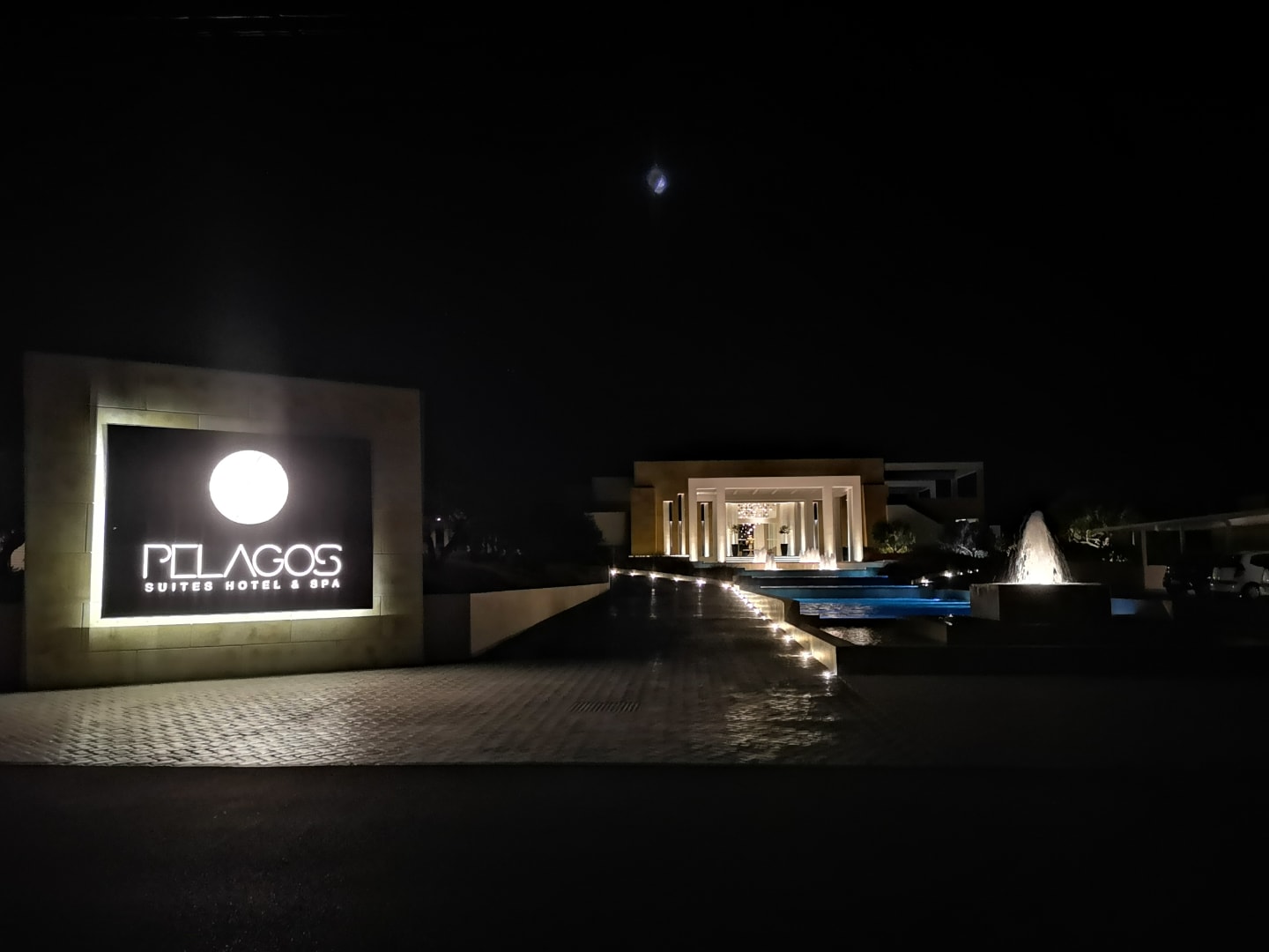 Hotelzufahrt bei Nacht