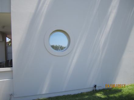 Unser Bullauge von außen.