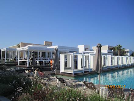 Cabanas und Blick auf die Restaurantterrasse.