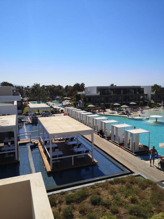 Gastro"Schwimmende" Teile der Sitzplätze vom Main Restaurant mit Blick auf den Hauptpool