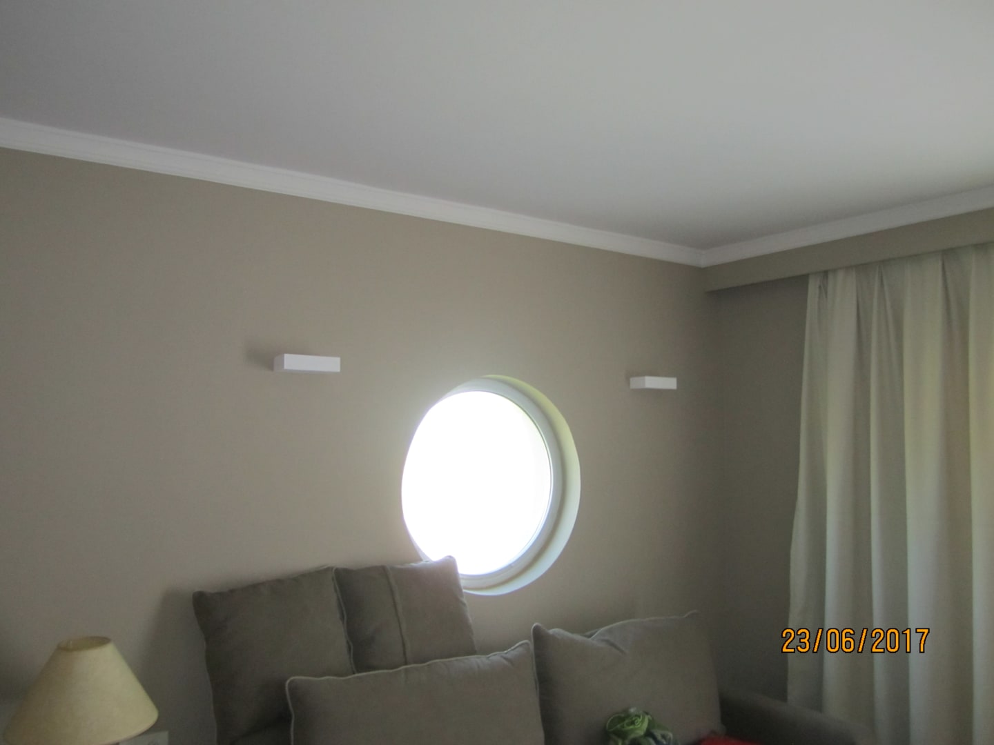 Bullauge mit Blick aufs Meer.