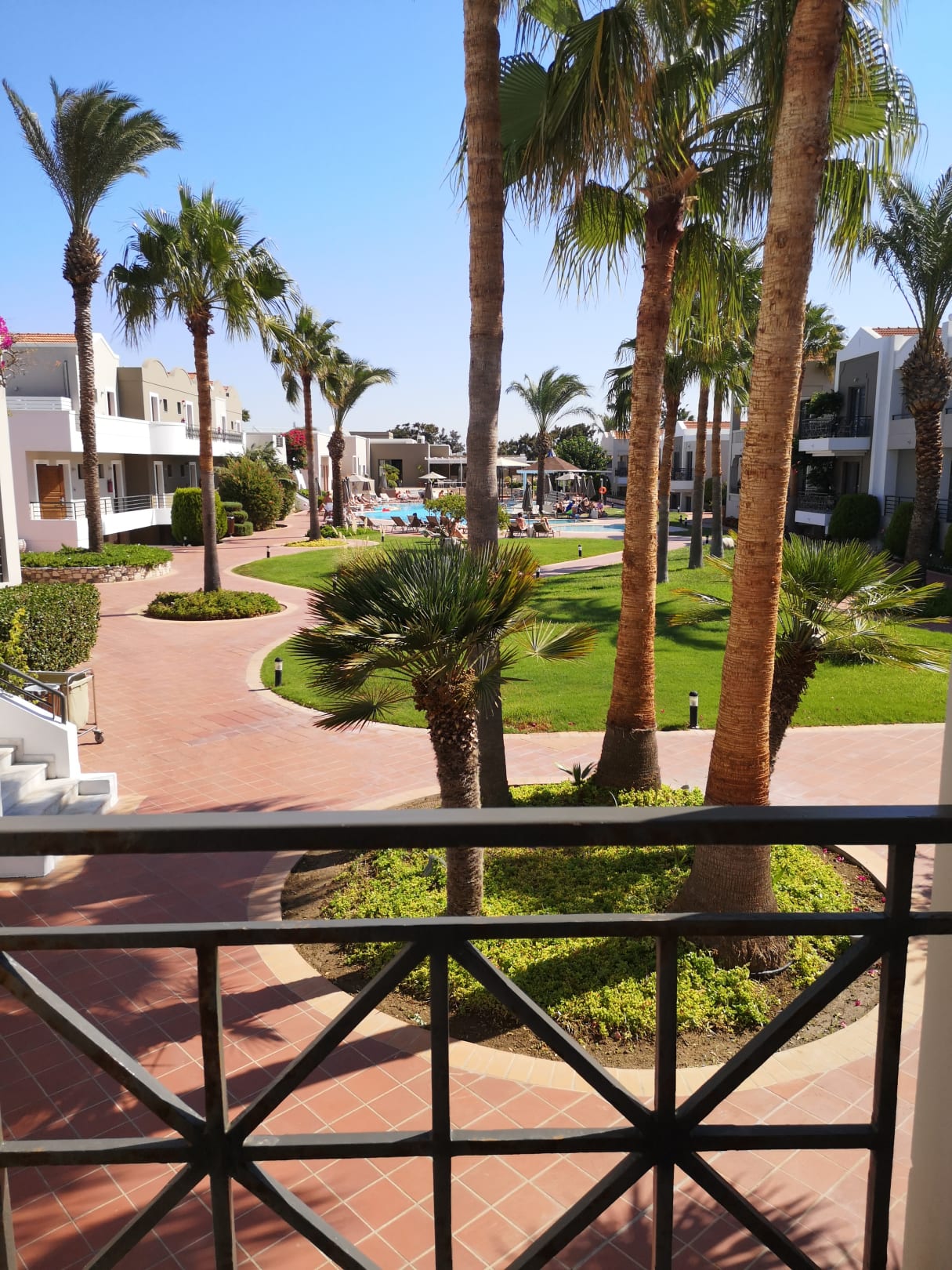 Ausblick vom Balkon zum zweiten Pool und Gartenanlage