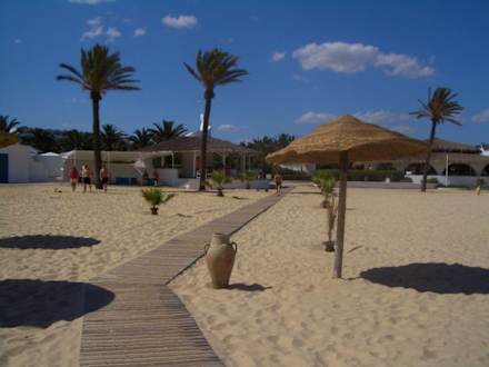 Der Weg vom Strand zurück zum Hotel. Im Hintergrund ist die Bar zu erkennen.