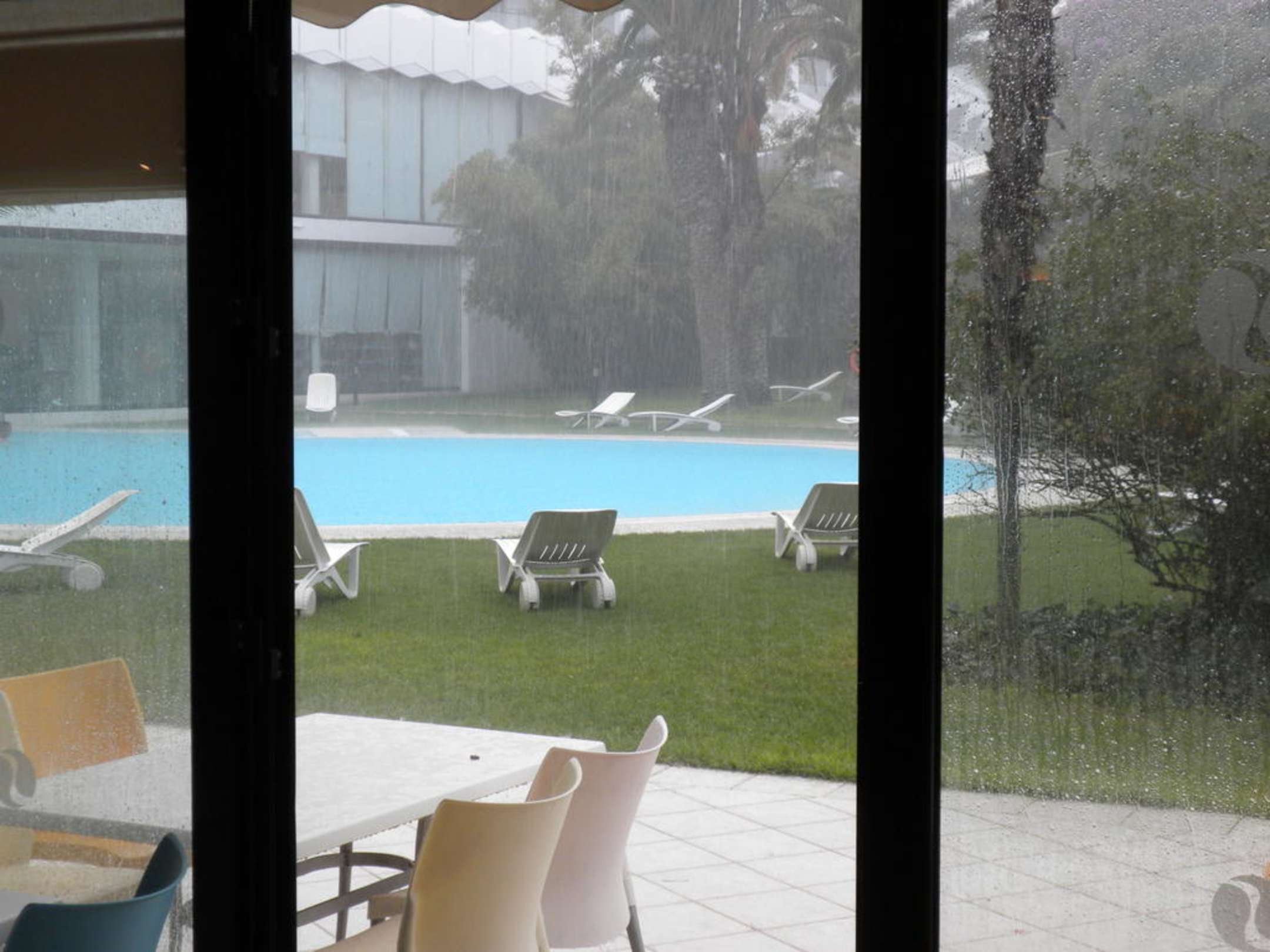 Blick zum Ruhepool bei Regen