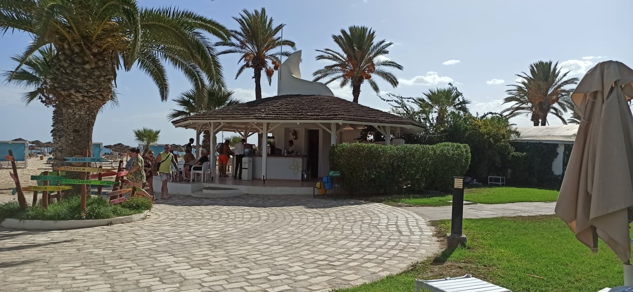 Weg zum Strand mit Strandbar
