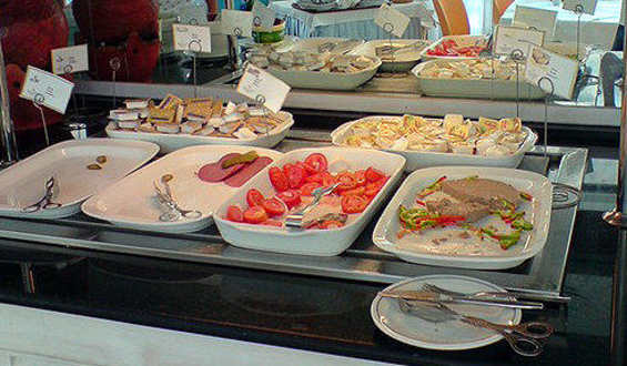 Links auf dem Teller war Scheibenkäse, dazu 2 Sorten Wurst. Fand ich etwas spärlich.