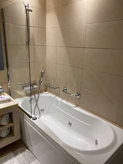 Badezimmer mit etwas kleinen Duschkopf
