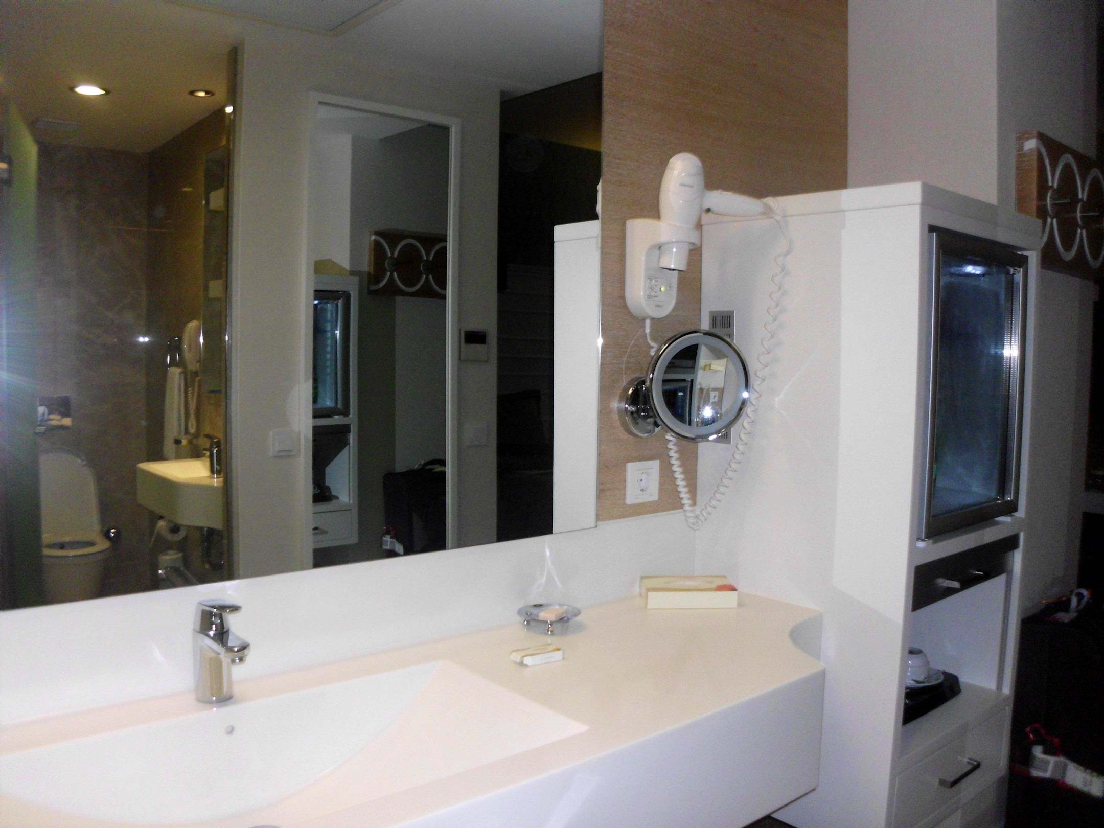Grosses Waschbecken, rechts Minibar