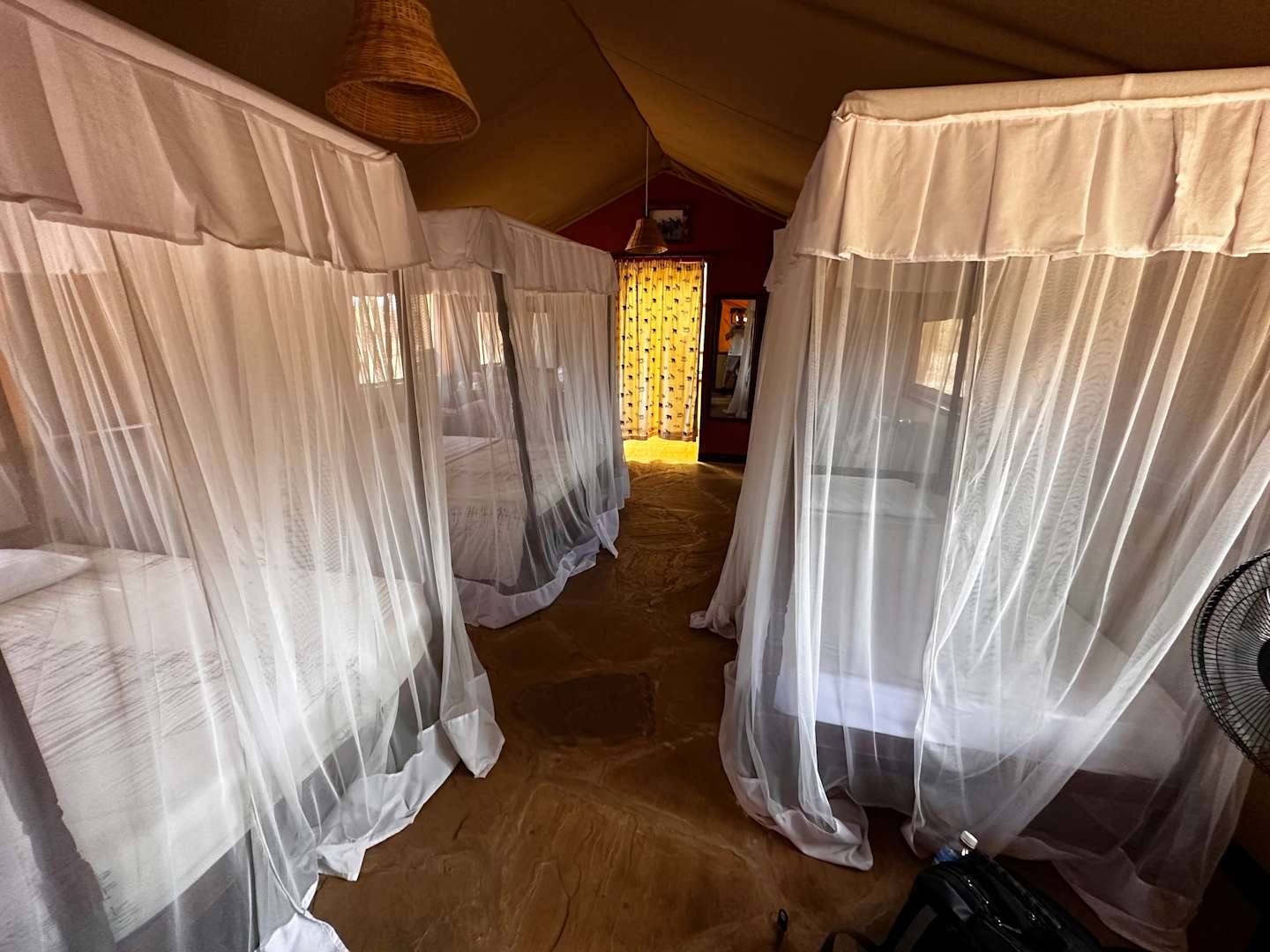 sehr einfaches Zelt, aber wenigstens Dusche innen