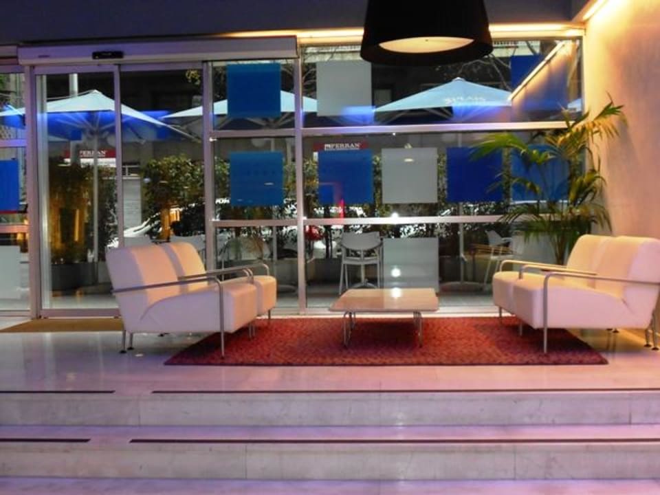 Eine der Sitzecken an der Barim Hintergrund (Aussenbereich) überdachte Sitzmöglichkeiten (oder Raucherbereich)