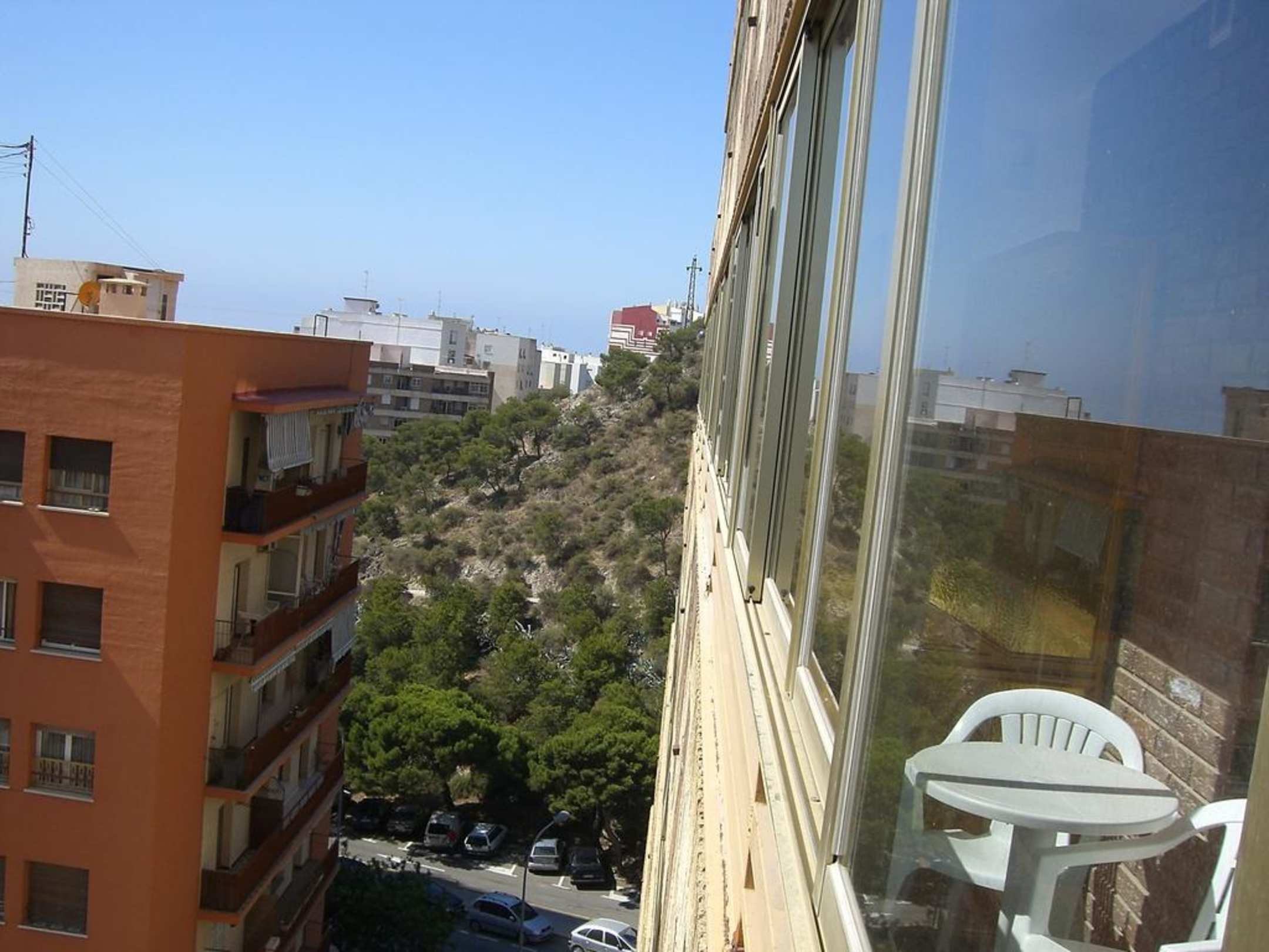 Seitlicher Ausblick vom Balkon aus auf die Strasse