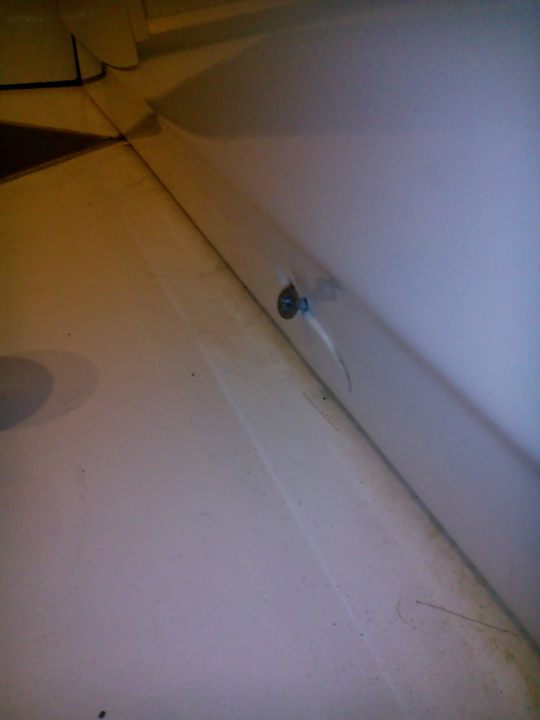 Dieses Bild zeigt den Badboden und einen Teil der Badewanne (rechts) eine Schraub steht herhausen. Man könnte daran hängen bleiben und sich verletzen. Man sieht das man hier nicht gereinigt hat. Das Bild war vom Erstbezug des Zimmers!!!