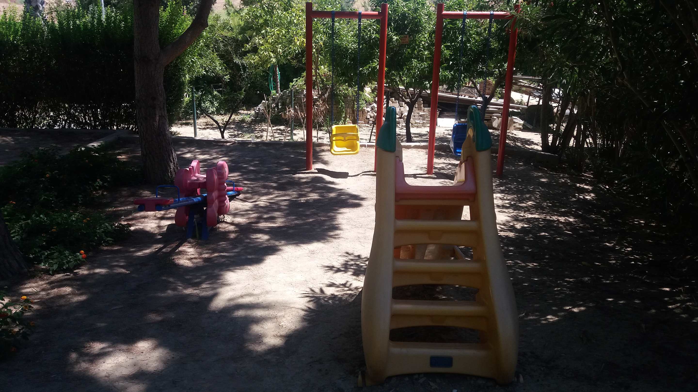 Angeblicher Spielplatz Schrecklich.........2 Garten rutschen Geräte vor der Baustelle. Wer lässt den hier sein Kind aufhalten. Verostete Metall Bauschutt liegt überall