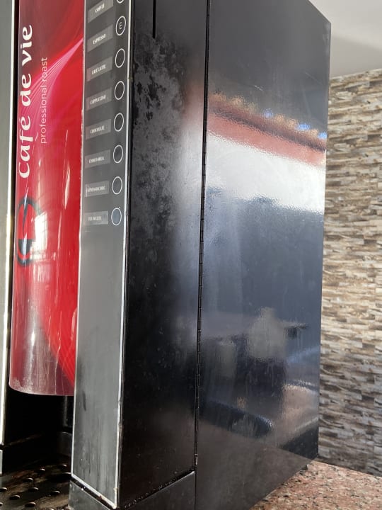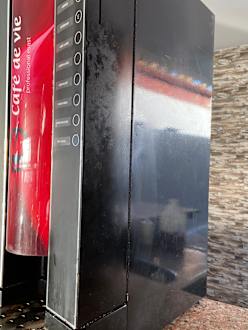 Kaffeemaschine dreckig und klebrig am Strand