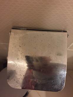 Toiletten Papierhalter , schmutzig und Rostig
