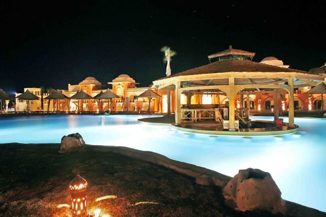 Poolbar am Salzwasserpool in der Nacht