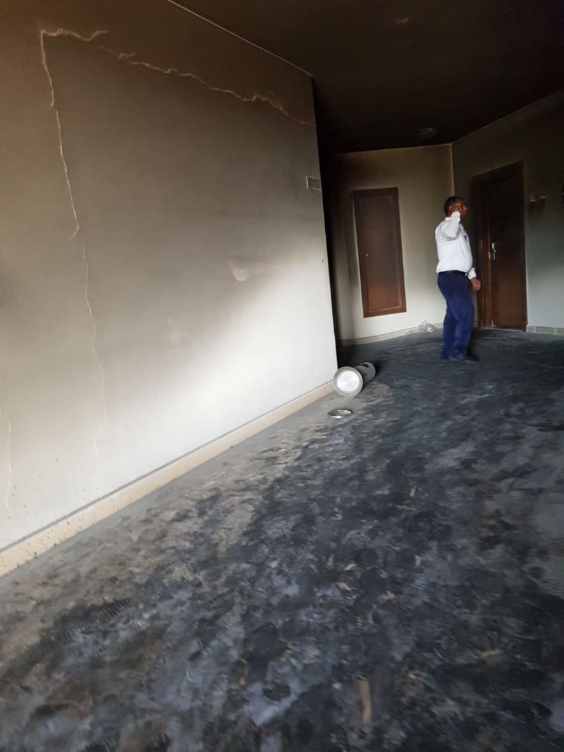 Flur, nach dem Brand