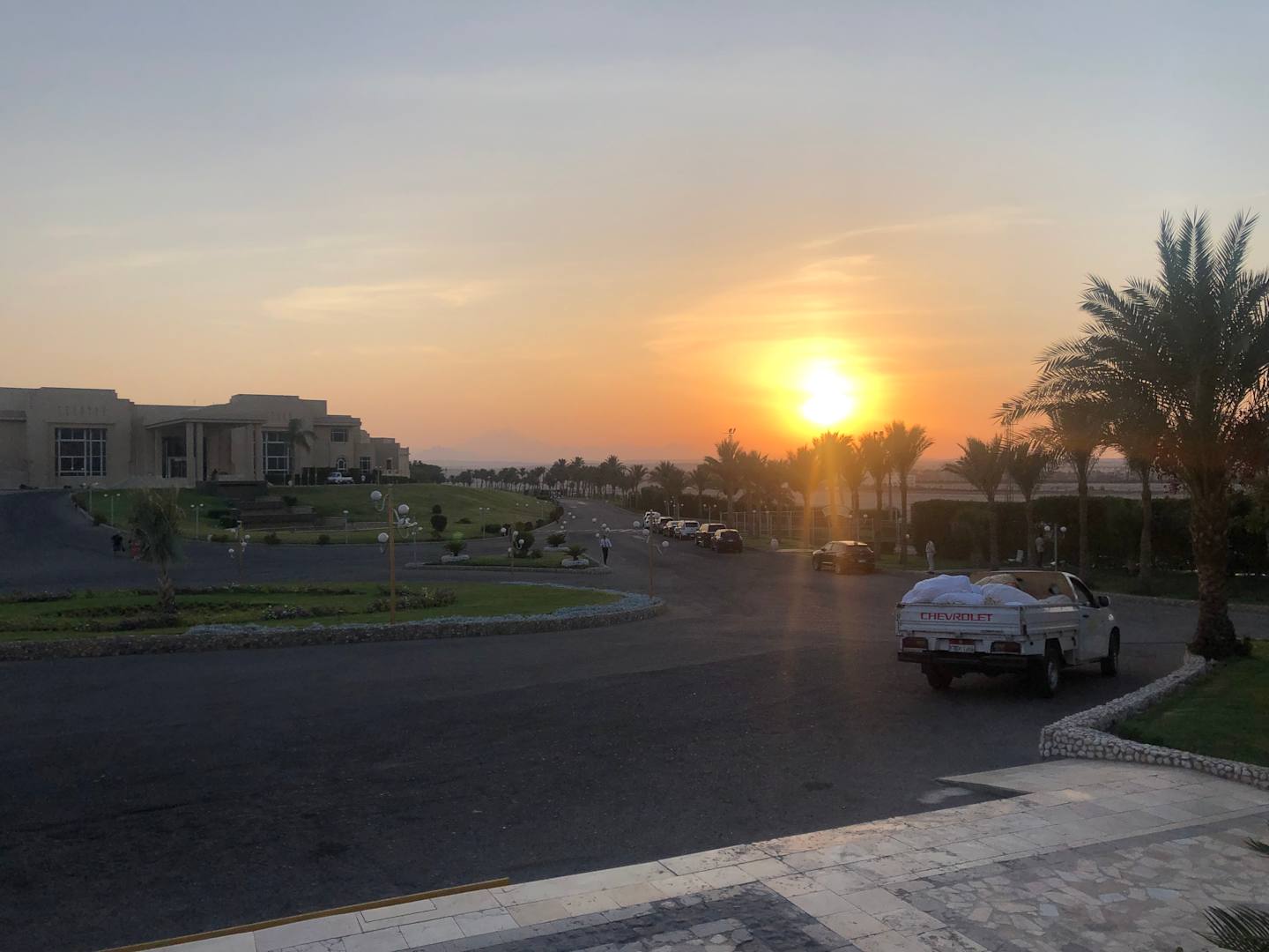Sonnenuntergang vor dem Haupteingang 1/3