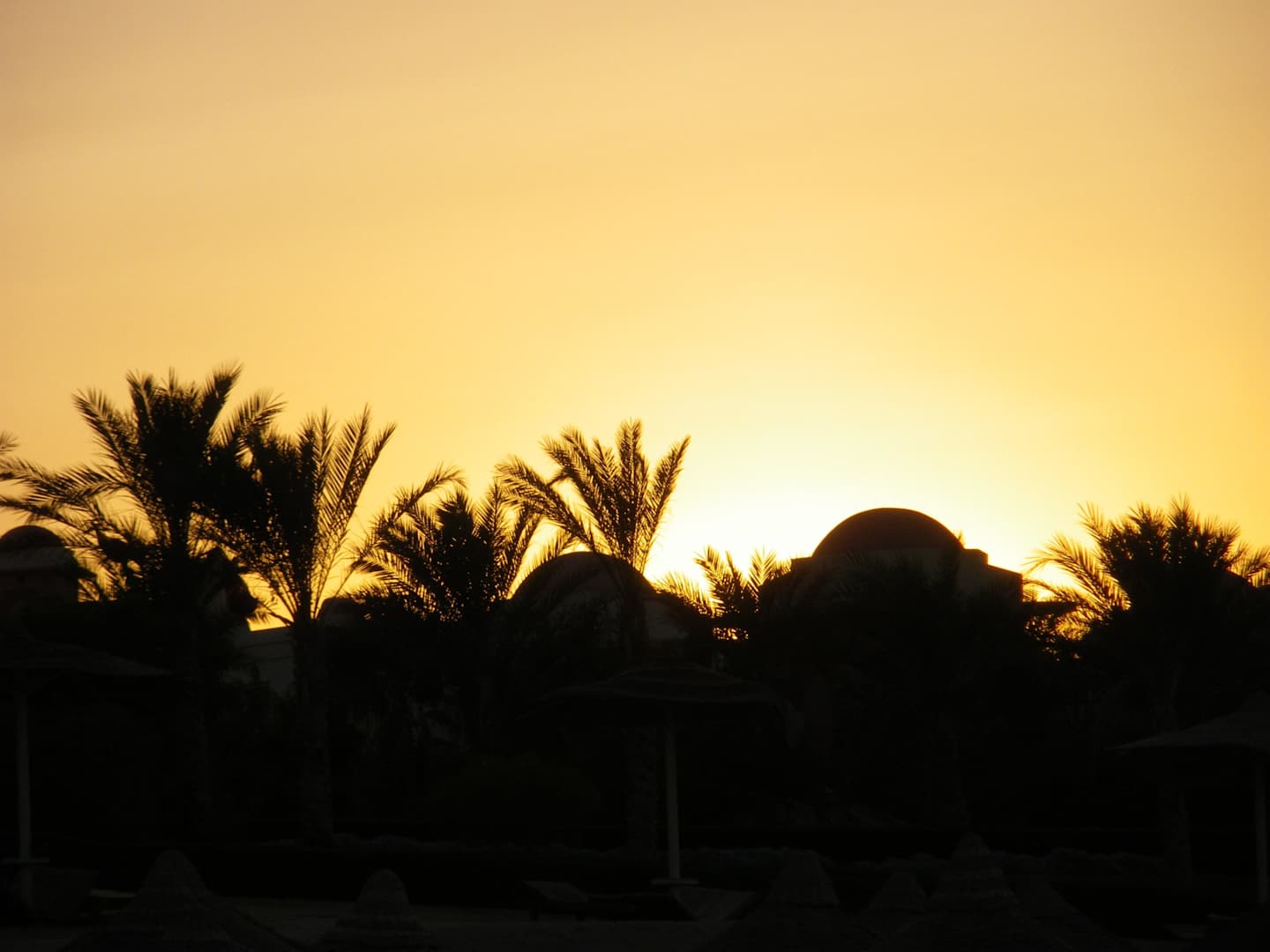 Sonnenuntergang vom Strand Richtung Hotelanlage