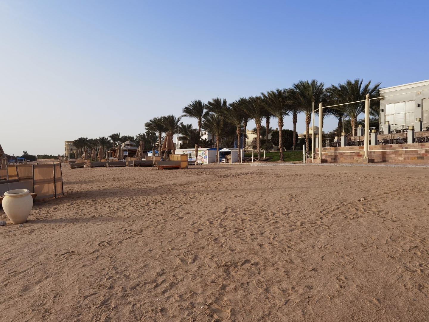 StrandStrand am Morgen mit Blick auf das Strandrestaurant