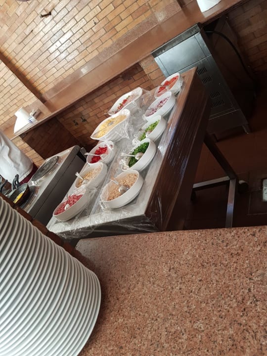 GastroDraußen gabs morgens frische Pancakes, Eier und Croissants / mittags und abends frisches Fleisch, Fisch, Fladen und Pasta