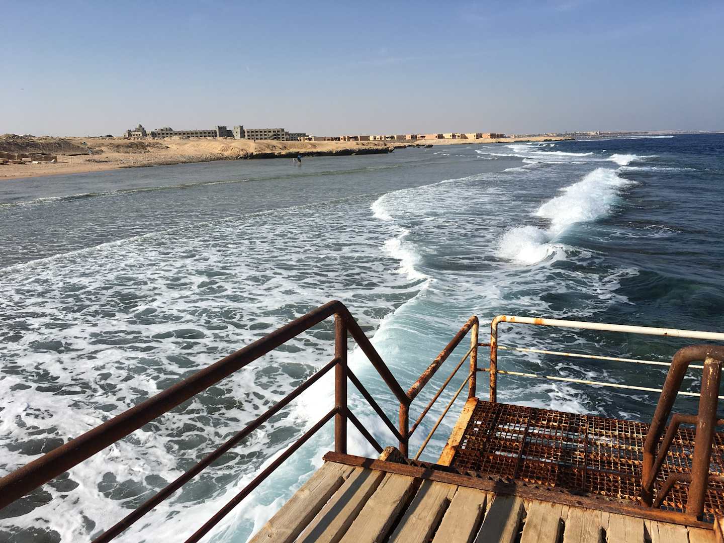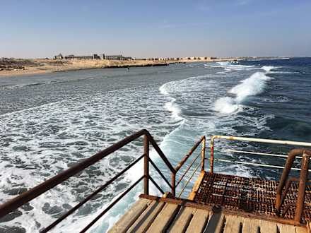 StrandHier vom Steg, ca. 80m vom Strand kann man zum Schnorcheln und Schwimmen ins Meer einsteigen. Interessante Unterwasserwelt am Riff.