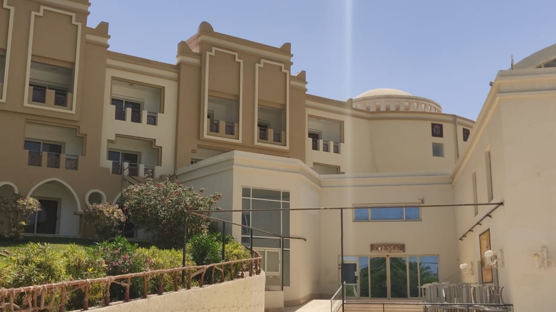 AußenansichtBlick auf das Hotel vom Innenhof,rechts das Hauptrestaurant,geradeaus zur Glastüre rein gehts in die Lobby