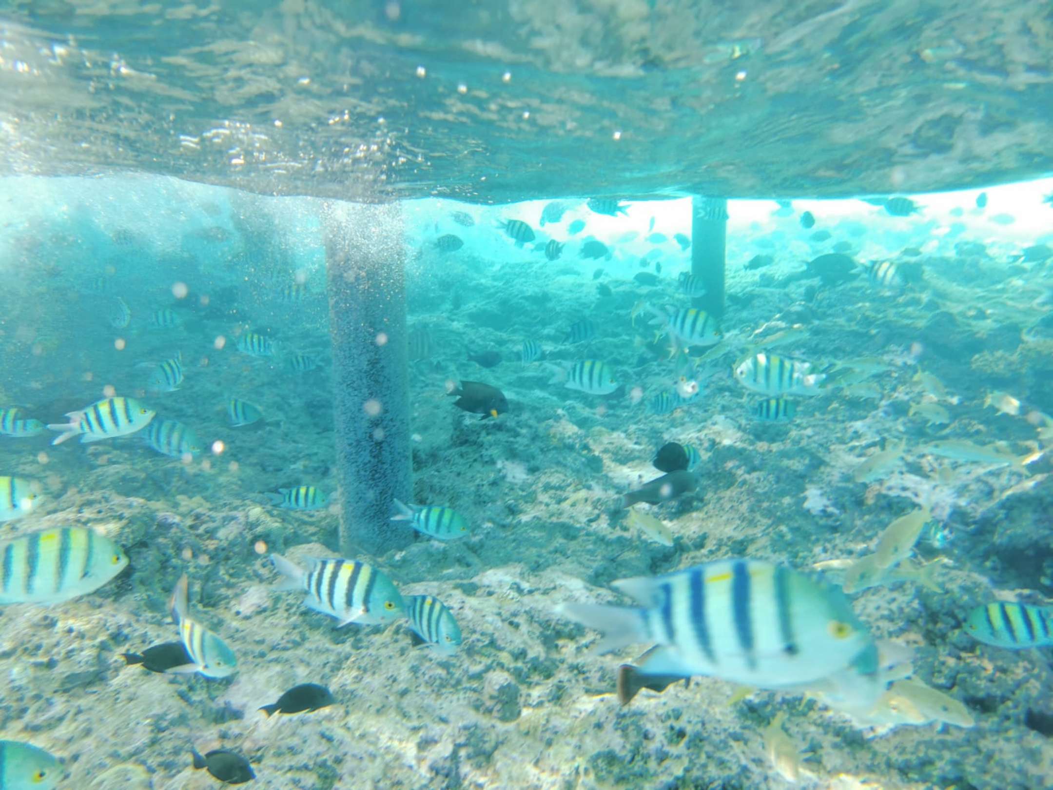Blick vom Hausriff unter den Steg