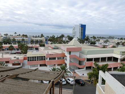 Ausblick auf das gegenüberliegende Einkaufcenter und zum Meer