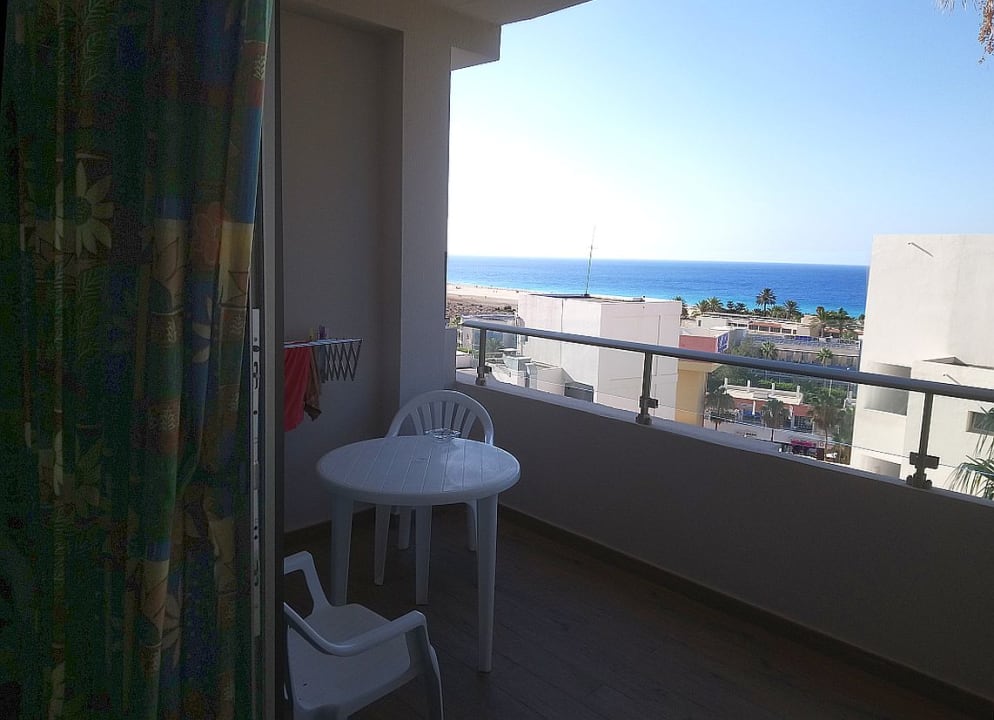 Das gefiel uns: Blick vom Balkon des Aptm 711 hinüber zur Küste, links vom Robinson Club.