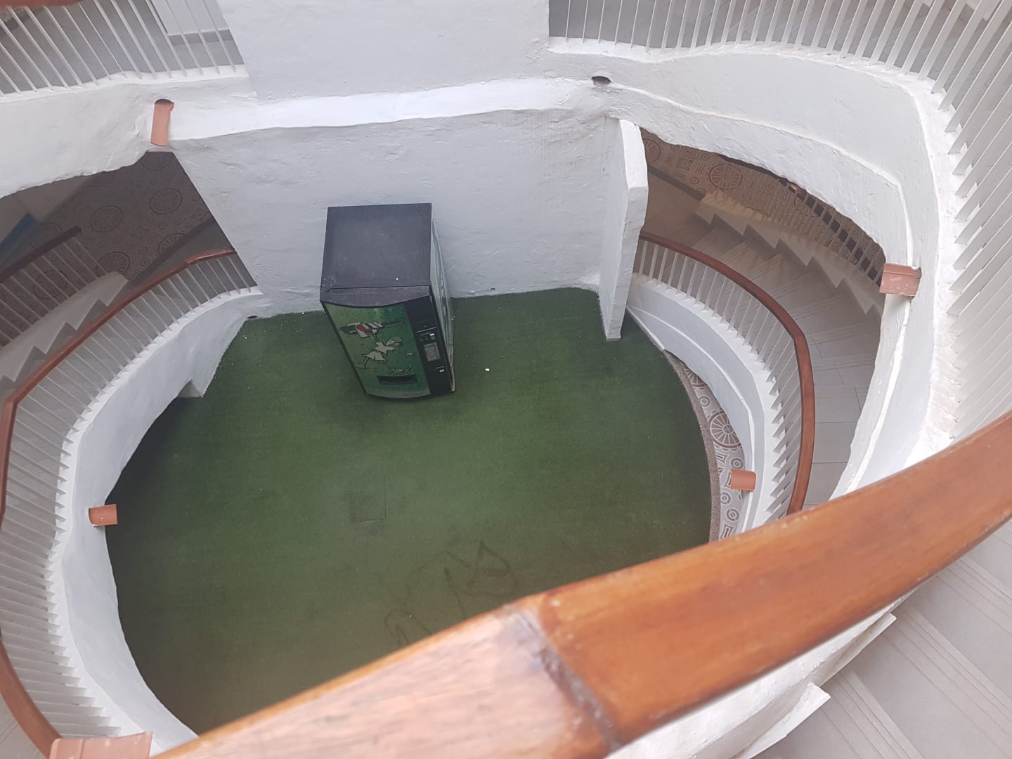 SonstigesTreppenhaus mit offenem Dach. Boden versifft, Treppen werden nie geputzt. Geländer staubig. Klebrige Flecken auf dem Boden und Geländer.