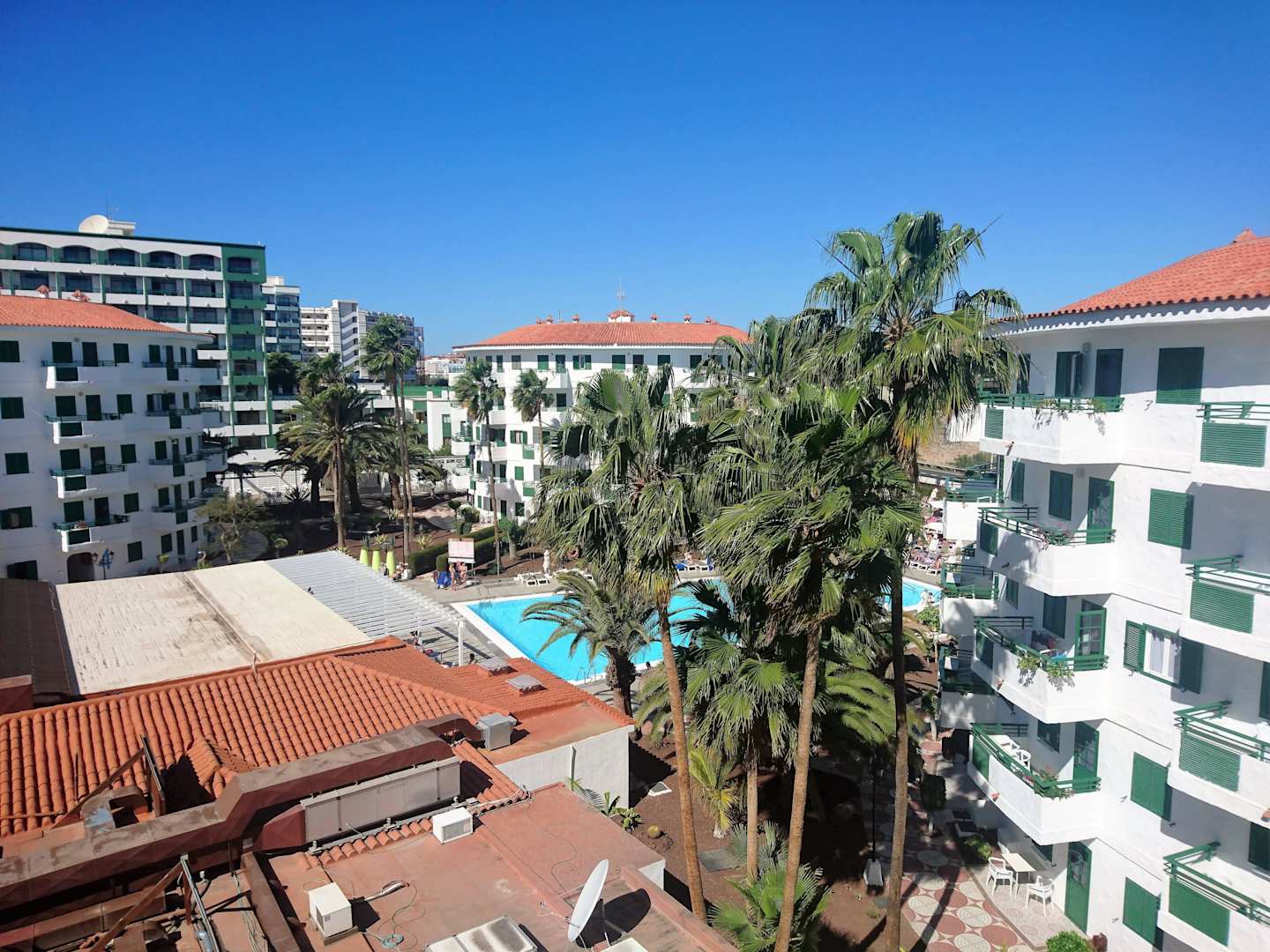 Vom Balkon in Richtung Pool