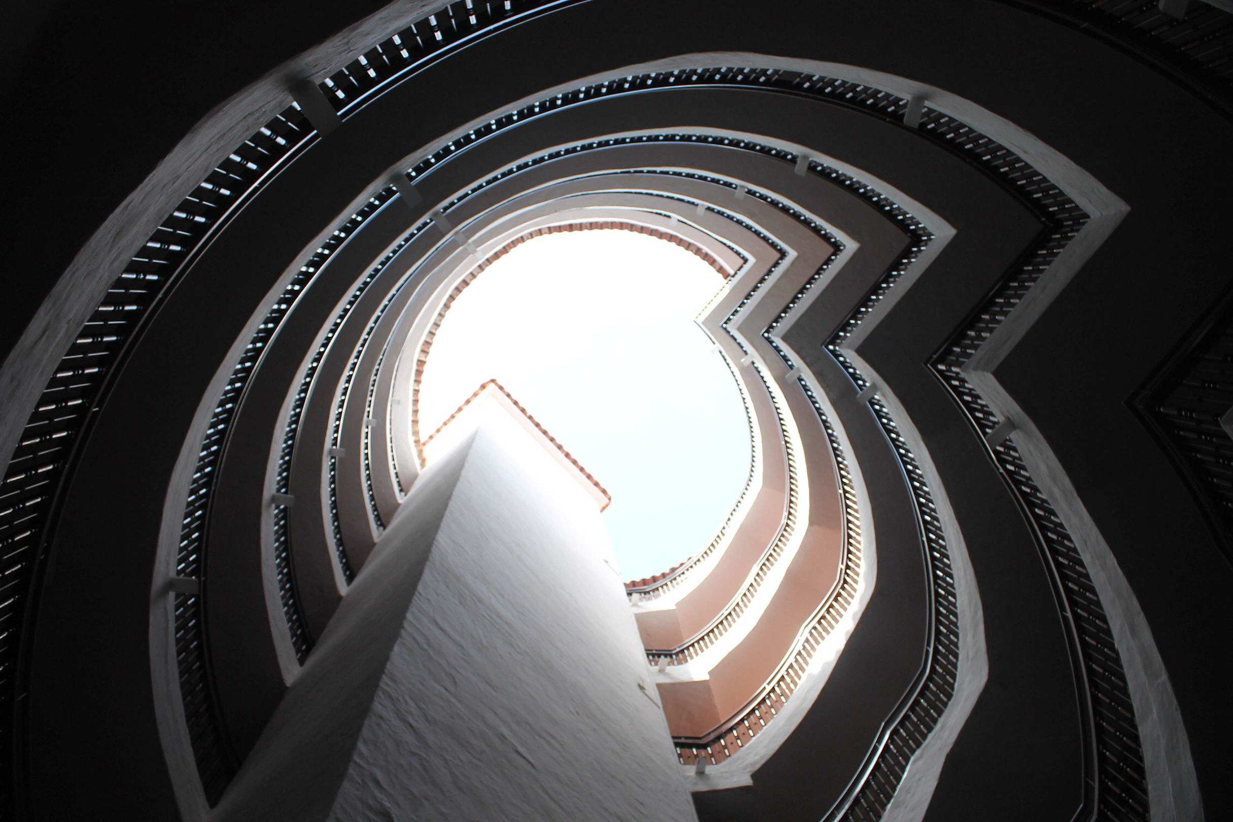 Blick nach oben im Treppenhaus Turm E