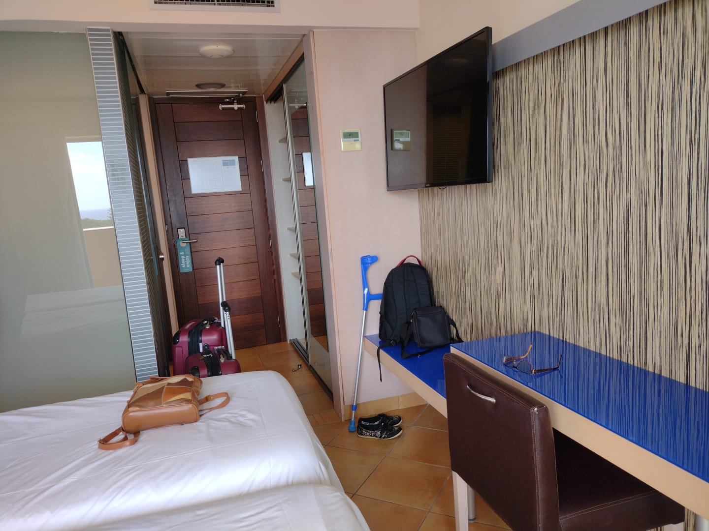 ZimmerEingang und kurzem Flur, TV (mehrere deutsch.