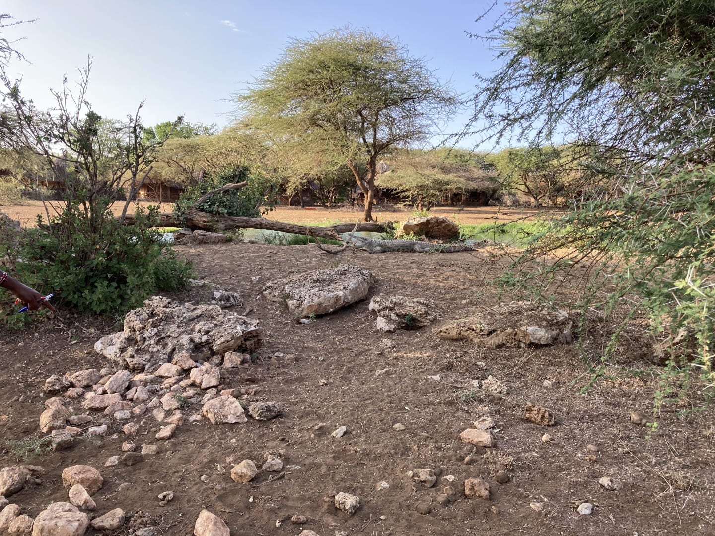 AusblickBesuch kl. Krokodil am kl.Wasserloch / Zeltseite ABER nur mit Massai !!!