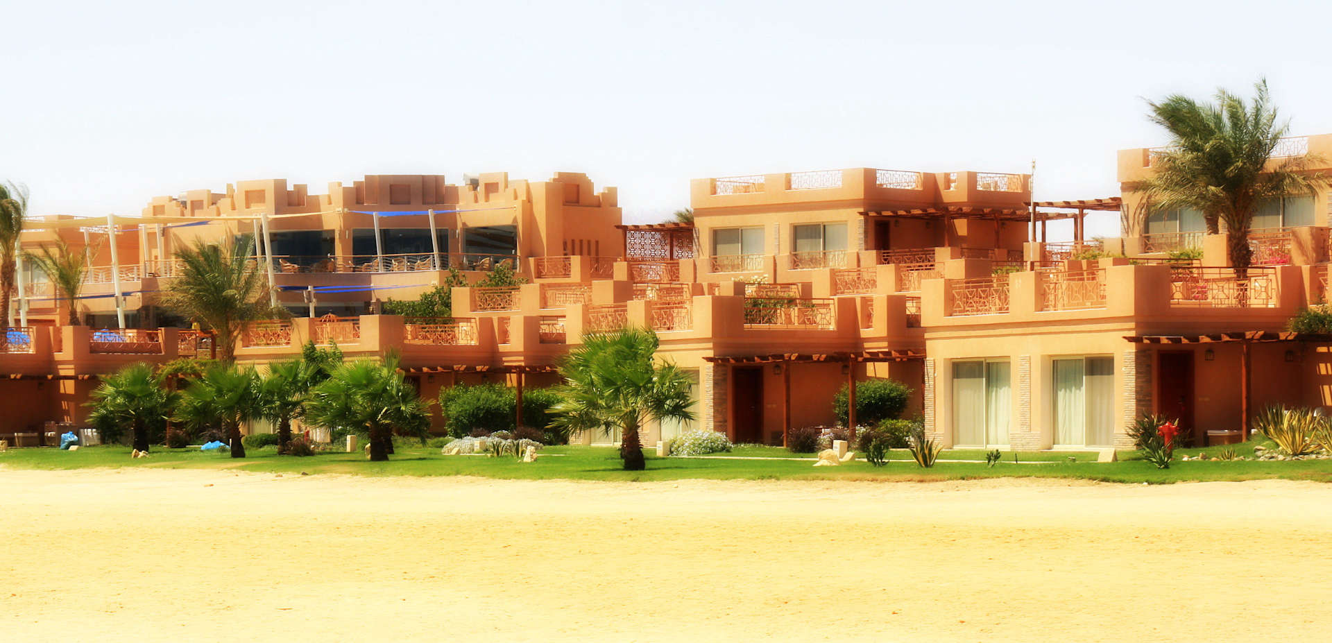 Blick aus dem Meer auf die Zimmer