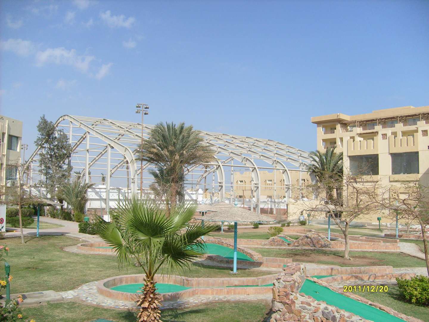 Blick vom Poolbereich auf die Minigolf und Tennis Anlage
