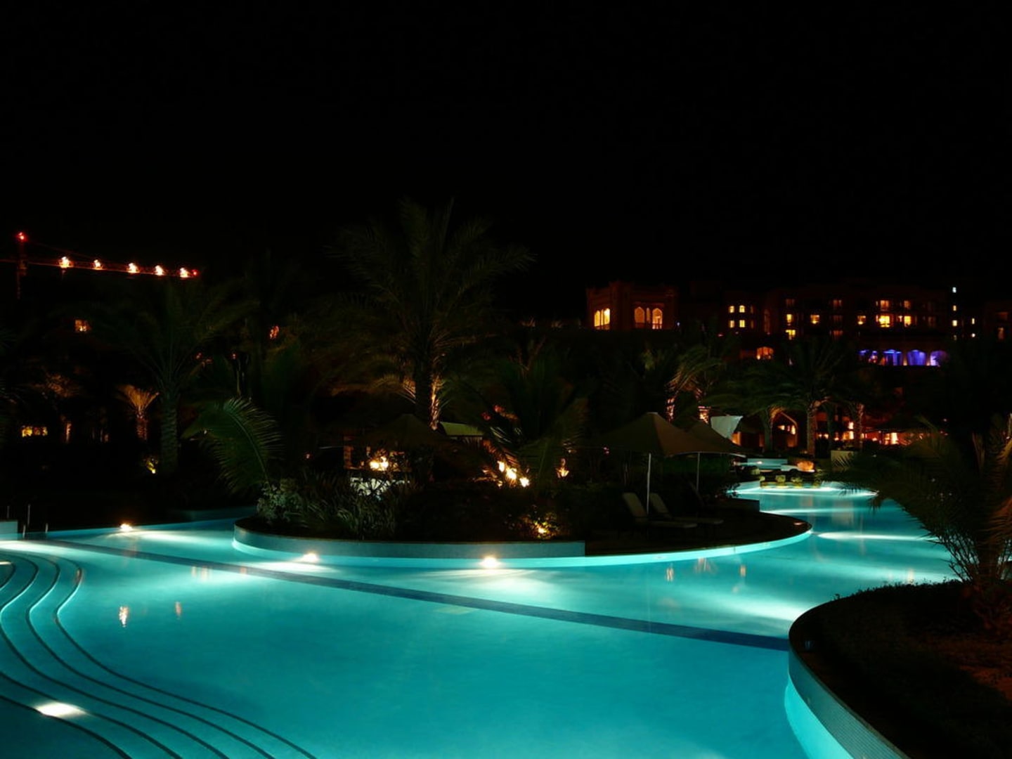 Der riesige Pool bei Nacht