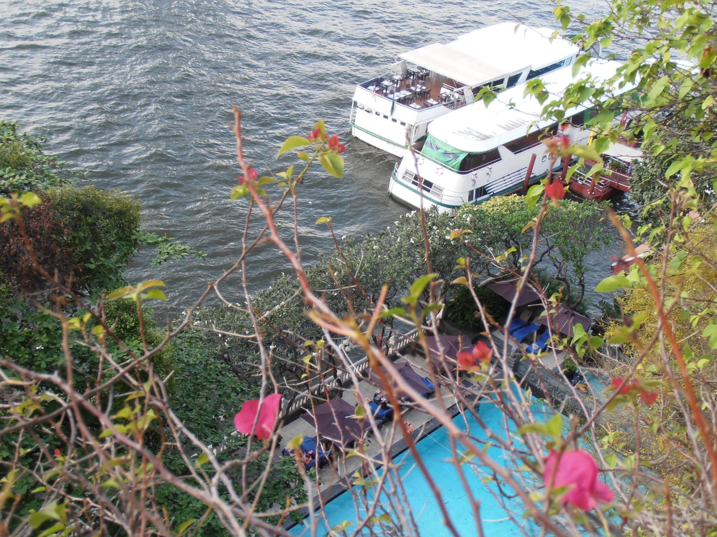 Pool und Ausflugsschiff vom Balkon